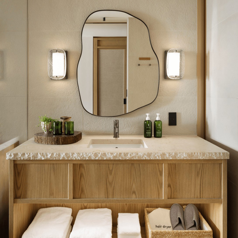 – Biophilic design blending reclaimed wood, preserved moss, and natural stone