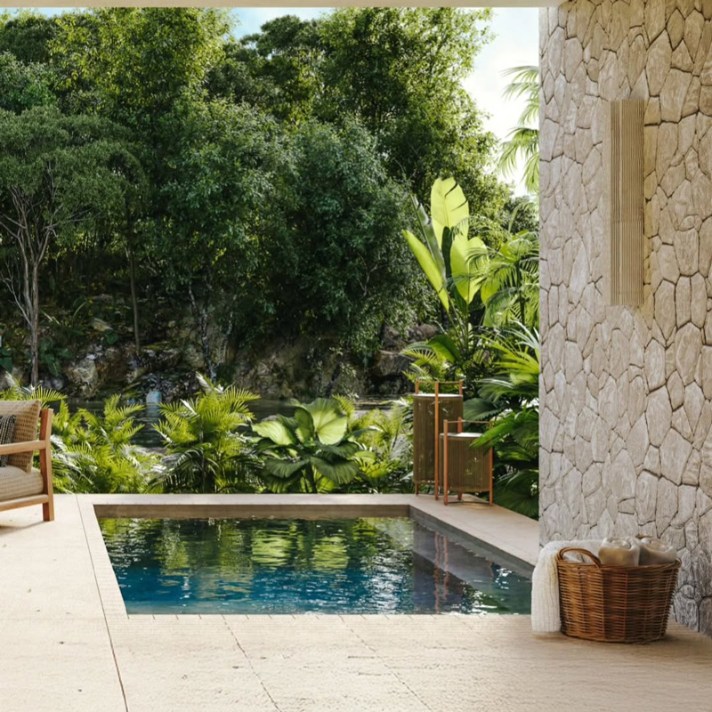 The architectural narrative of Alila Mayakoba is one of seamless dialogue with its surrounding environment. The resort unfolds across lagoon and beachfront zones, balancing open‑air structures with the natural contours of mangroves and waterways. Interiors crafted by Huber Design employ a palette of organic textures and materials — from locally sourced hardwoods such as tzalam and parota to hand‑chiseled Mérida limestone and recuperated travertine — grounding the aesthetic in authentic regional character. Custom furniture and artisan decor echo the rhythms of place, while terraces and shaded verandas blur the thresholds between indoors and out, offering a sense of shelter without confinement.