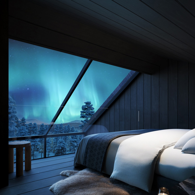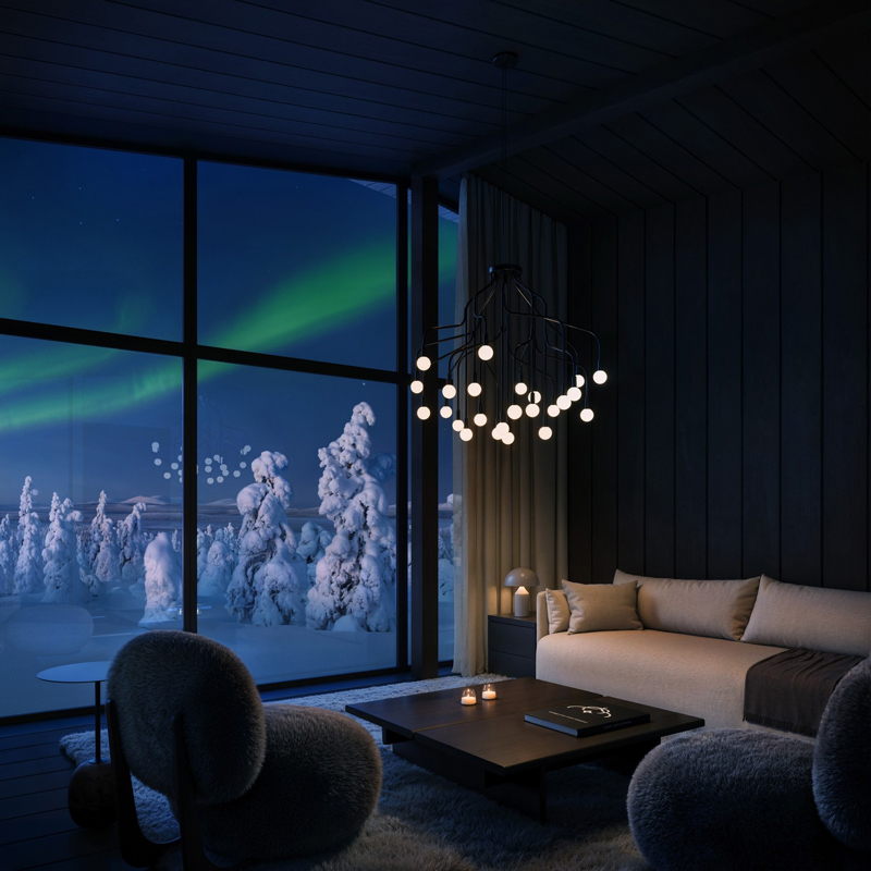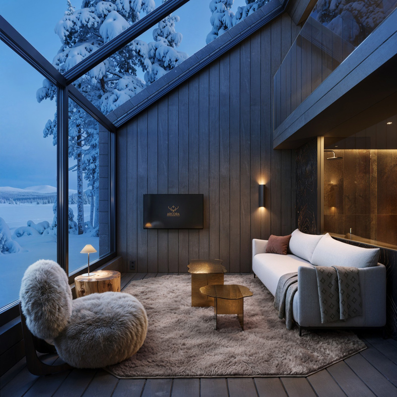 Arcora’s architecture is conceived in dialogue with its surroundings, designed to disappear into the landscape rather than dominate it. The aesthetic is rooted in Nordic minimalism, where clean lines, natural materials, and muted tones allow the environment to take center stage. Floor-to-ceiling windows frame the Arctic wilderness like living paintings, bringing the outside in at every moment. Interiors emphasize warmth and softness, with carefully curated textures, ambient lighting, and a restrained palette that reflects snow, sky, and forest. This is not decorative luxury, but sensory design, where silence, light, and space become the true protagonists of the experience.