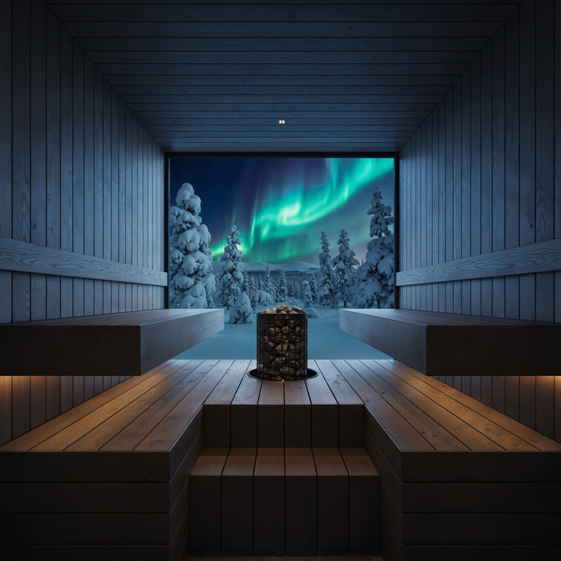 – Unique villas with sky windows, private saunas, and outdoor hot tubs