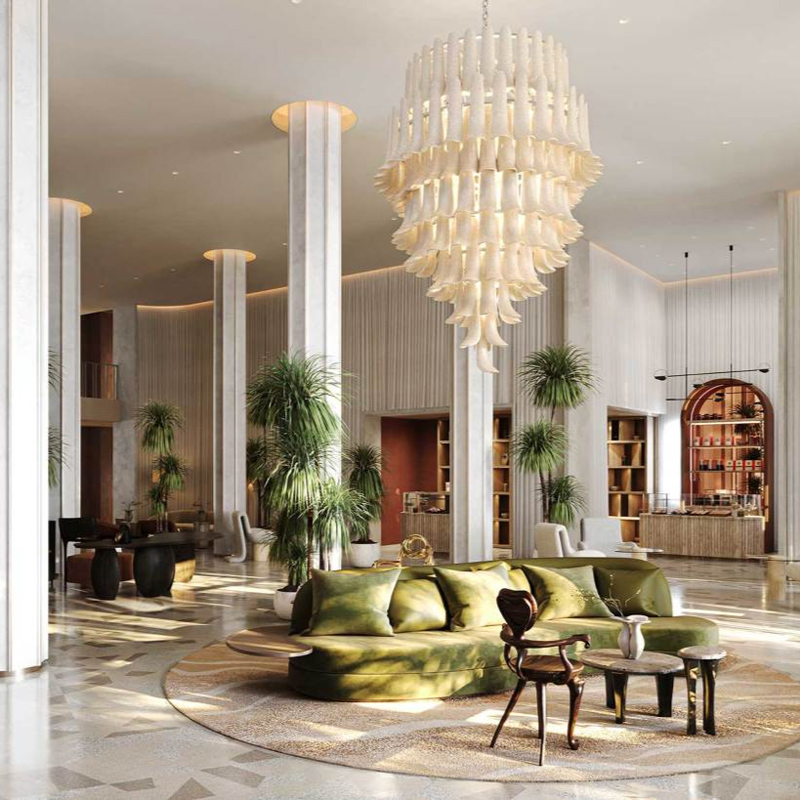 Delano’s design journey blends its iconic Art Deco backbone with a fresh “soft minimalism” aesthetic that emphasizes light‑filled spaces, airy proportions and breezy elegance. Historic elements like the iconic octagonal columns and original terrazzo floors are celebrated alongside modern reinterpretations, creating interiors that feel timeless yet distinctly contemporary. Public spaces — from expansive lobbies to intimate lounges — are crafted to evoke both grand performance and relaxed ease, with textured finishes, sculptural details and an understated palette that echoes the coastal environment.