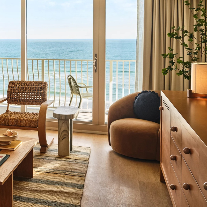 The aesthetic narrative of Dune House unfolds like a poem to the sea. Led by Sage Studio in collaboration with Islyn Studio of New York, the interiors and public spaces pay homage to Florida’s vintage surf culture, coastal mid‑century modern influences, and the original architectural spirit that once defined this beachfront gem . Natural materials — weathered wood, sea‑glass hues, sun‑bleached stone — are woven with more refined contemporary elements to create spaces that feel both effortless and exquisitely curated. The design language celebrates texture and light, transporting guests into a realm of quiet luxury where every corner feels open, breezy, and intimately connected to the Atlantic horizon .