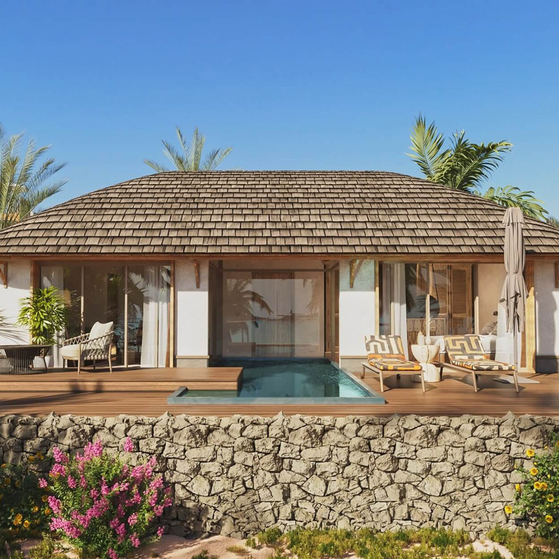 – 22 private villas blending sustainable design and local craftsmanship