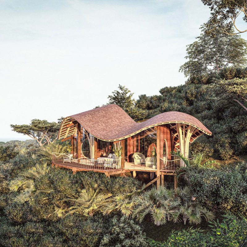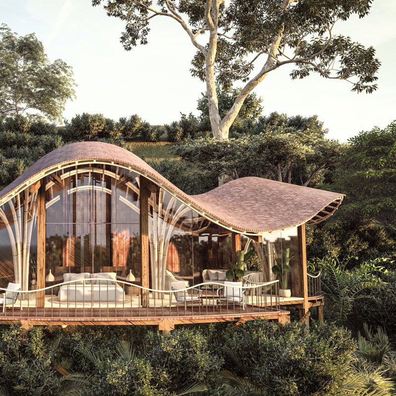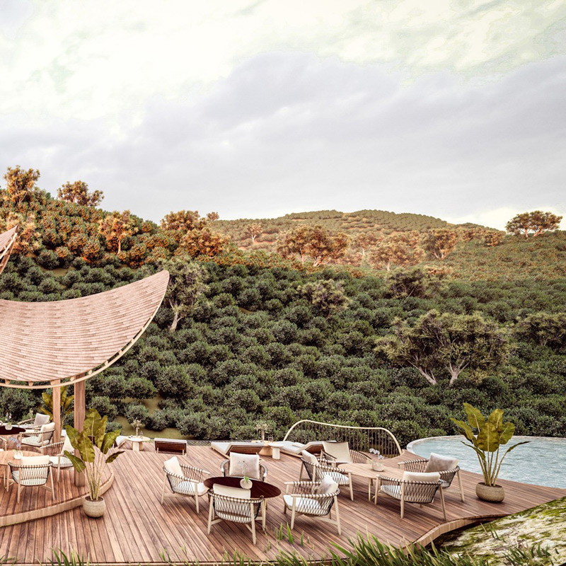 The name Erebero, meaning “a place where you can see far”, defines the architectural spirit of the lodge. Designed to follow the natural contours of the hillside, the structures appear to emerge organically from the terrain, rather than sit upon it. Organic forms, natural materials, and expansive glazing create a seamless dialogue between interior and exterior spaces. The design draws inspiration from rolling hills and layered horizons, with stepped terraces and flowing lines that mirror the surrounding topography. At its core, the architecture is about perspective, framing the forest not as scenery, but as an ever-present, living presence.