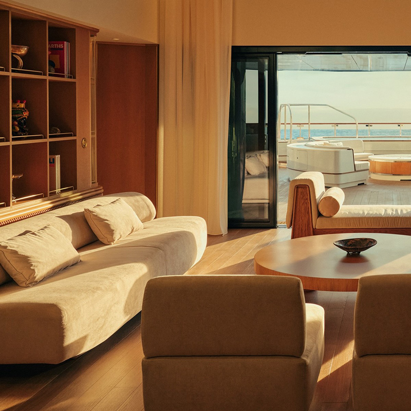 Spanning approximately 207 meters, Four Seasons I is conceived as a residential-inspired masterpiece where architecture dissolves into the surrounding ocean. Interiors are shaped by leading design studios including Tillberg Design of Sweden and Martin Brudnizki Design Studio, creating a layered aesthetic that balances contemporary elegance with nautical heritage. Floor-to-ceiling windows, expansive terraces, and open-air lounges ensure the sea remains the central visual and emotional anchor of the experience. The yacht itself is designed as a sequence of social and private spaces, where light, air, and water define the rhythm of daily life.