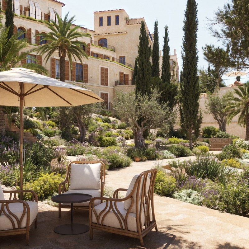 At Gran Hotel Margalida, well-being is approached with a sense of quiet intention. The hotel’s outdoor spaces invite relaxation, from the pool overlooking the sea to the terraced gardens that echo Banyalbufar’s historic agricultural landscape. Guests are encouraged to embrace a slower pace, whether through morning swims, sunset walks, or moments of stillness surrounded by nature. The hotel also offers curated experiences that connect visitors to the essence of the island, from hiking in the Tramuntana Mountains to exploring nearby villages. Every element is designed to restore balance and create a feeling of effortless calm.