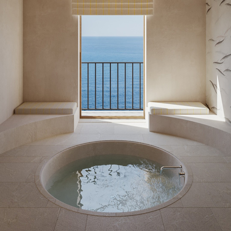 With just 29 rooms, each one oriented toward the sea, Gran Hotel Margalida offers an experience defined by privacy and immersion in nature. The interiors are calm and restrained, featuring a palette inspired by the surrounding landscape with soft whites, sandy beiges, and muted mineral tones. Thoughtfully curated furnishings and artisanal details lend warmth and character, while expansive windows invite the outside in. Many rooms open onto private terraces, where the horizon feels within reach. Bathrooms echo the same philosophy, with natural materials, generous spaces, and a quiet elegance that transforms daily rituals into moments of indulgence.