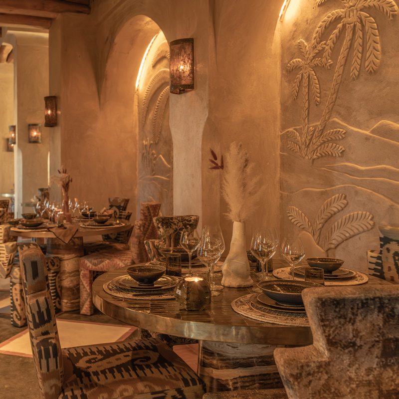The property blends Moroccan heritage with modern comfort. Thick sun-baked walls, carved wood accents, and plaster finishes root the design in local craftsmanship, while terraces, courtyards, and rooftop viewpoints open the interiors to light and landscape. Every architectural element emphasizes calm, proportion, and a seamless relationship with the desert environment, allowing guests to feel fully present in the extraordinary setting.