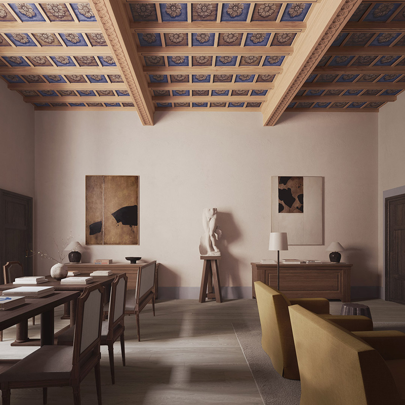 Set within a 15th-century noble residence, the project is defined by a careful restoration that preserves the architectural integrity of the building. Original volumes, historic materials, and Renaissance details are not only protected, but elevated through a contemporary lens. The interiors are entrusted to the renowned design duo Gilles & Boissier, whose work creates a refined dialogue between past and present. Frescoes, high ceilings, and noble textures coexist with a restrained, elegant aesthetic. The result is not decorative excess, but a form of silent luxury, where history becomes part of the experience rather than a backdrop.