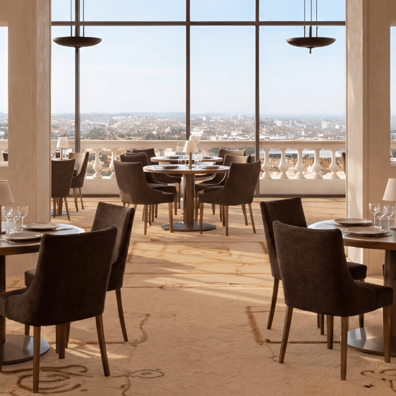 The rooms and suites, ranging from intimate retreats to expansive signature spaces, are conceived as sanctuaries of calm. Defined by clean lines, natural materials, and soft textiles, they reflect a balance between restraint and comfort. Some suites open onto sweeping terraces or panoramic views across Lyon, transforming each stay into a visual experience — where mornings begin above the clouds and evenings dissolve into golden light.