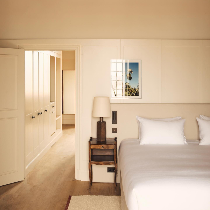 Chevalier & Guillemot and Atelier Saint‑Lazare reimagined the château’s interiors, seamlessly marrying historical architecture with contemporary touches. Soft natural textures, reclaimed wood, and curated artworks create warm, intimate spaces that invite reflection and relaxation. Vaulted ceilings, stone arches, and restored period details harmonize with modern furnishings, offering a perfect balance between authenticity and understated luxury.