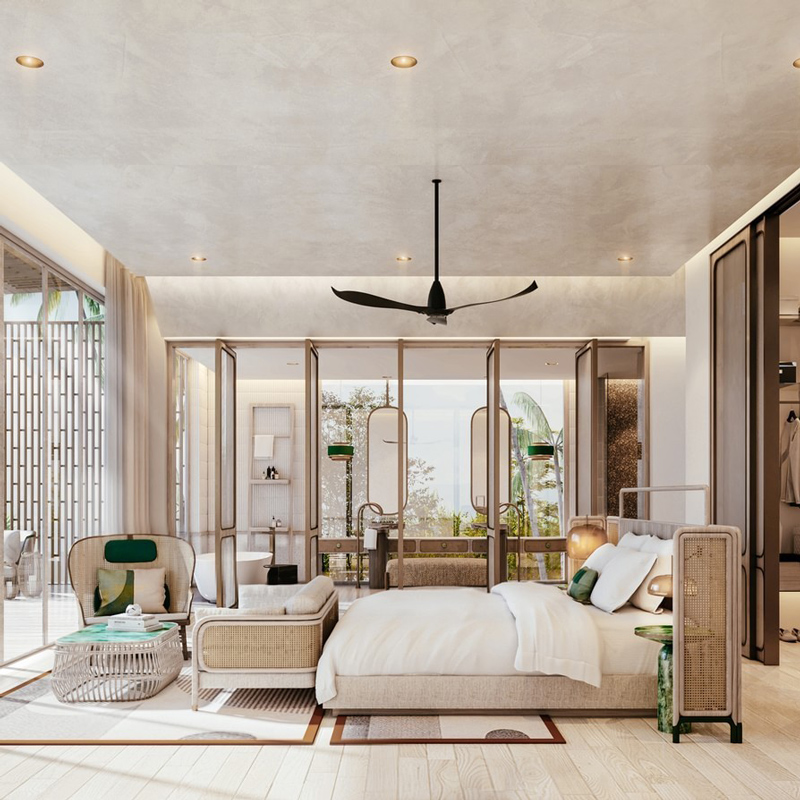 The resort’s architecture and aesthetic draw inspiration from minimalist design traditions while honoring the rich tapestry of Vietnamese craftsmanship. Here, modernist lines meet natural materials and subtle textures, creating a visual language that feels both effortlessly chic and thoughtfully sensitive to the environment. Across lawns fringed with palms and coral‑kissed waters, each space blends indoor elegance with outdoor splendor — inviting the elements to participate in the experience of place.