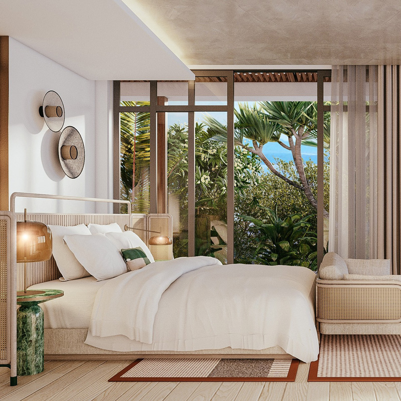 – Minimalist yet tropical modernist design celebrating local craftsmanship