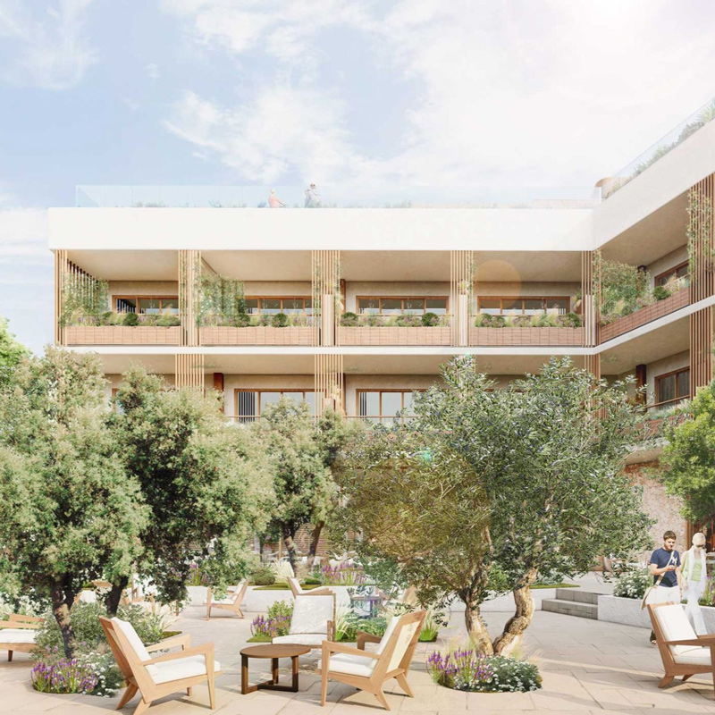 Spread across five buildings, the resort’s architecture draws directly from Mallorca’s natural and cultural heritage. The design is an elegant interplay between built form and landscape, where structures blend harmoniously into their surroundings. Natural materials such as hand-placed stone, wood, and textured finishes create a tactile and organic aesthetic, while a palette of soft neutral tones enhances the sense of calm. Curated artworks by local and international artists punctuate the spaces, adding depth and narrative to the overall design. The result is a refined yet understated elegance that feels both contemporary and timeless.
