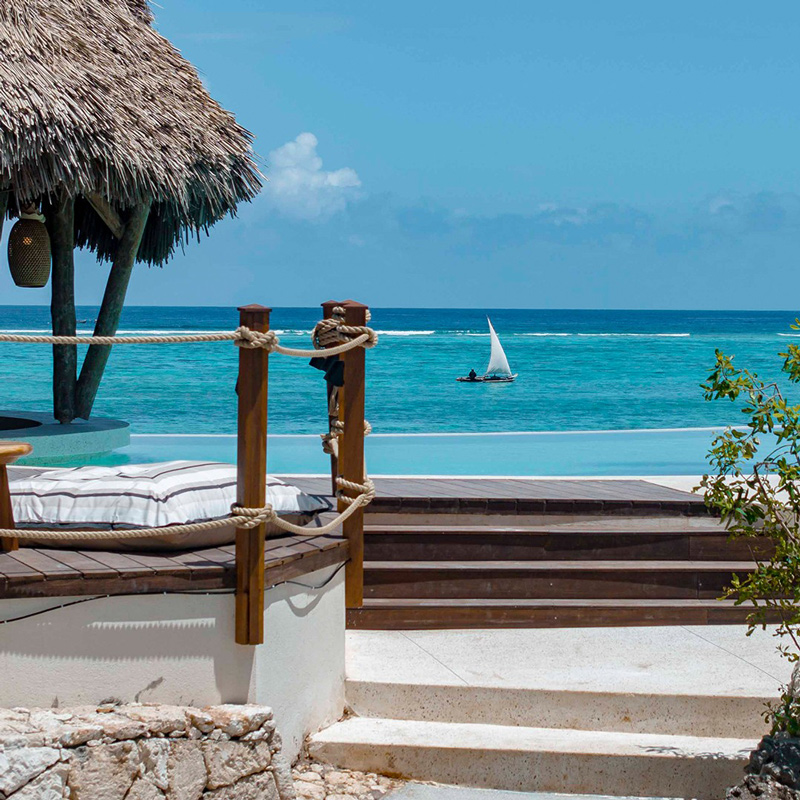 Located on the northeast coast of Zanzibar, Matemwe Attitude occupies a stretch of untouched shoreline facing the legendary Mnemba Island lagoon. Here, miles of blond sand lead into shallow, crystalline waters, while swaying palm trees and lush tropical gardens frame the horizon. The village of Matemwe itself is known for its gentle local rhythm — fishing dhows, barefoot paths, and quiet beach days define this authentic corner of the island seldom overrun by crowds. Accessible in about 50–60 minutes by car from Abeid Amani Karume International Airport and roughly an hour from historic Stone Town, the hotel balances tranquil seclusion with easy connectivity to the island’s cultural heart.