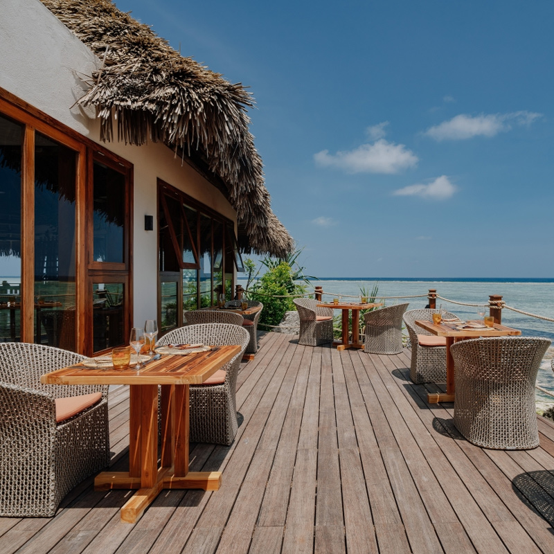 Wellness here is not just a program — it is woven into the very rhythm of the day. Guests can indulge in outdoor massages beneath palms, embark on snorkeling excursions in the Mnemba Atoll, try a local coffee tasting, or even join a cooking class with the resort chef. For moments of quiet reflection, the spa and communal areas offer serene spaces to relax, read, or simply watch the waves. The resort’s approach to activities is intentionally flexible — some days begin with sunrise on the beach, others with a nap in a hammock, and the best ones combine both.