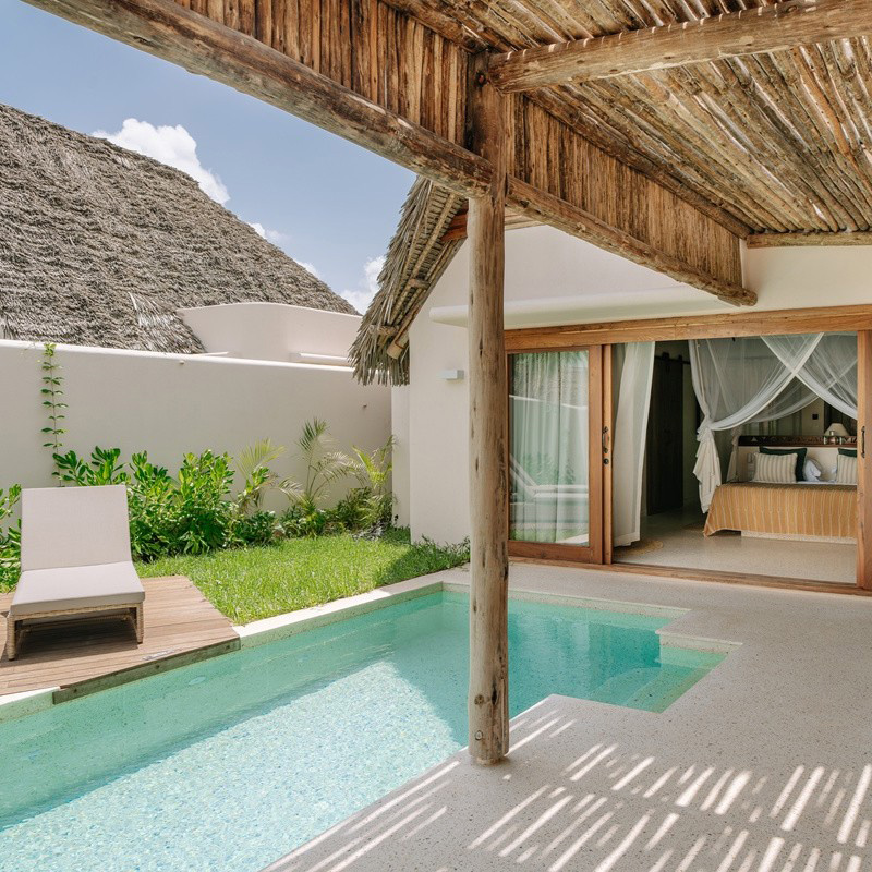 Each villa at Matemwe Attitude is a spacious, thoughtfully curated retreat, blending light‑filled interiors with natural textures and soft palettes that reflect the colors of Zanzibar itself: sand, sea, sky, and lush foliage. Luxurious yet grounded, accommodations are designed to feel both intimate and open — rooms flow effortlessly to outdoor spaces, while careful attention to detail ensures a sense of peace and gentle escape. Many guests highlight private pool terraces and direct ocean views as standout features that elevate the everyday into the extraordinary.