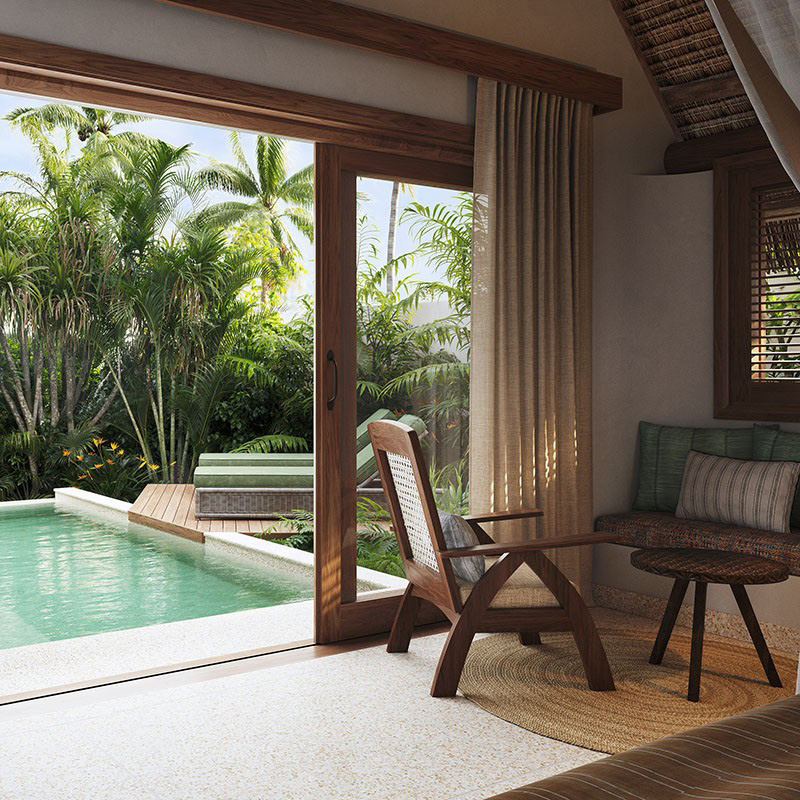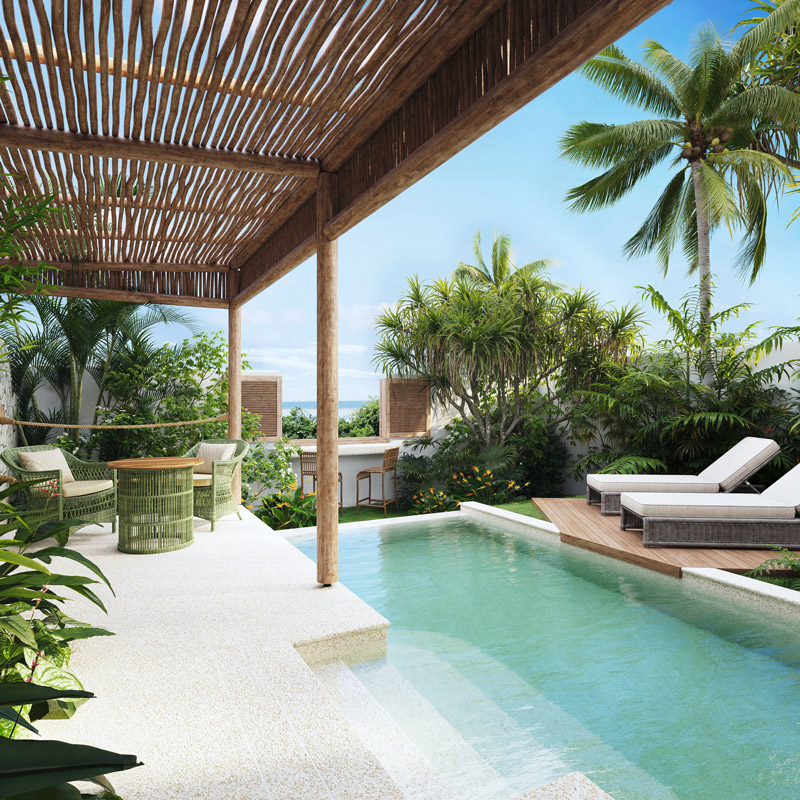 – 74 villa retreats with private or pool access