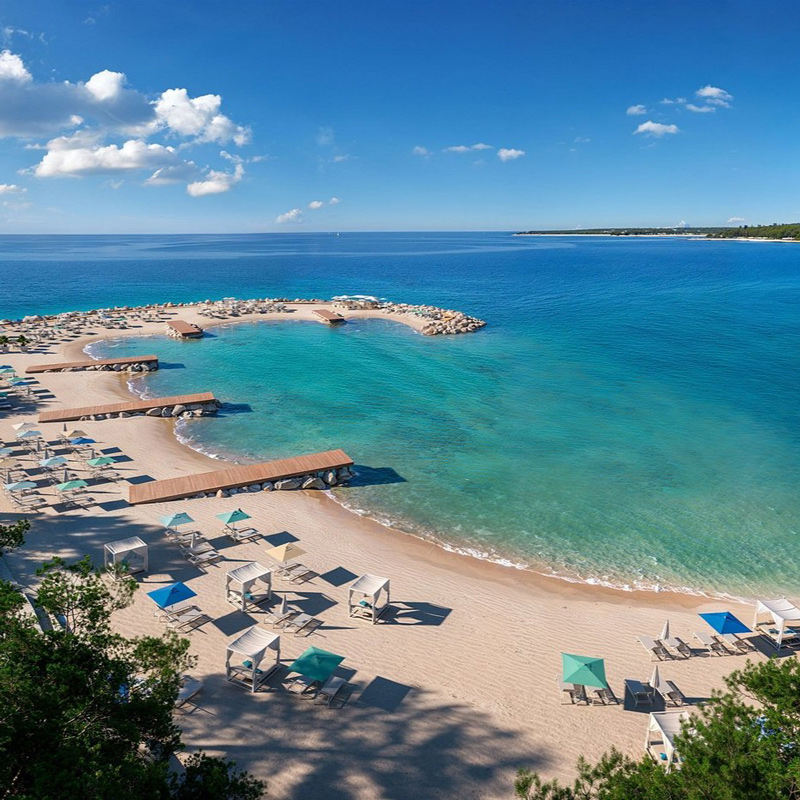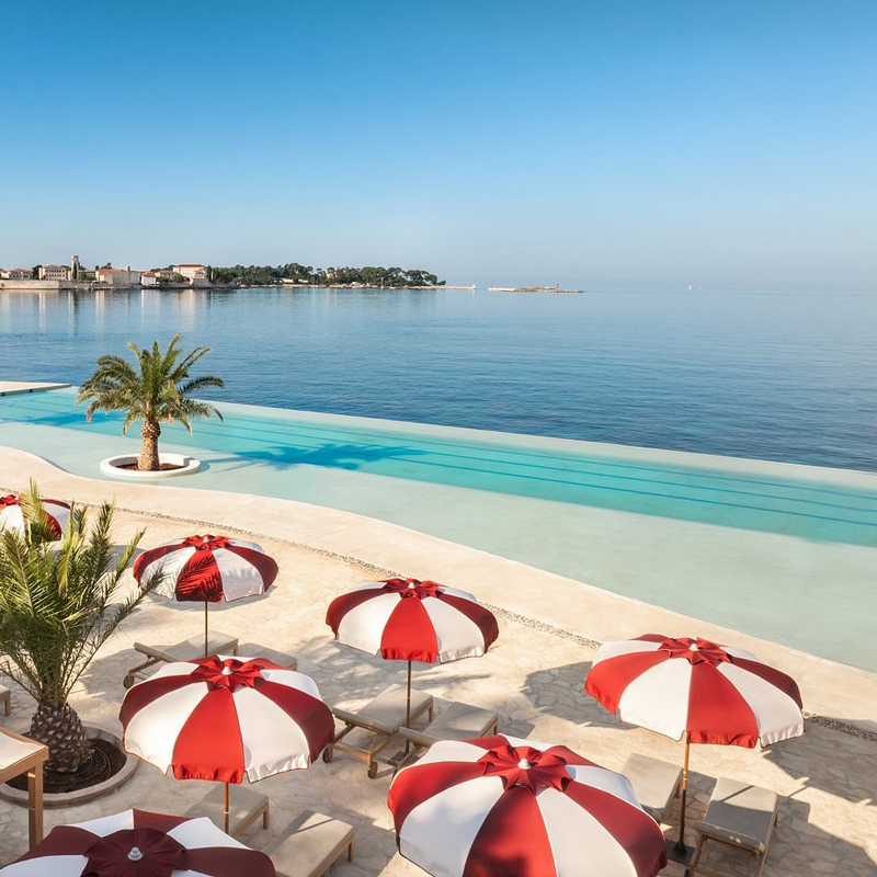 Designed for both relaxation and adventure, the resort features three themed beaches, 11 indoor and outdoor pools, and the only ESPA Wellness & Spa in Croatia, offering bespoke treatments, revitalizing journeys, and serene spaces to balance body and mind. A 3,000 sqm family zone filled with entertainment and kid‑centric activities ensures joyful memories for all ages, while an experience concierge curates local adventures like cycling along the historic Parenzana trail or exploring underwater stone labyrinths. Sports enthusiasts can enjoy tennis courts, water sports, and dynamic fitness programs throughout the day.