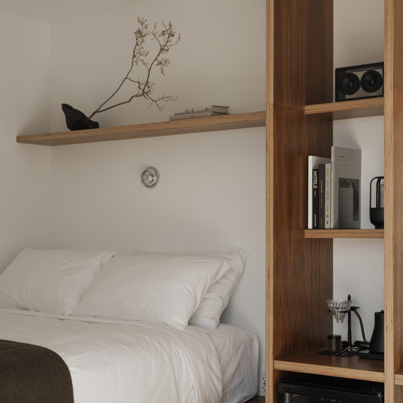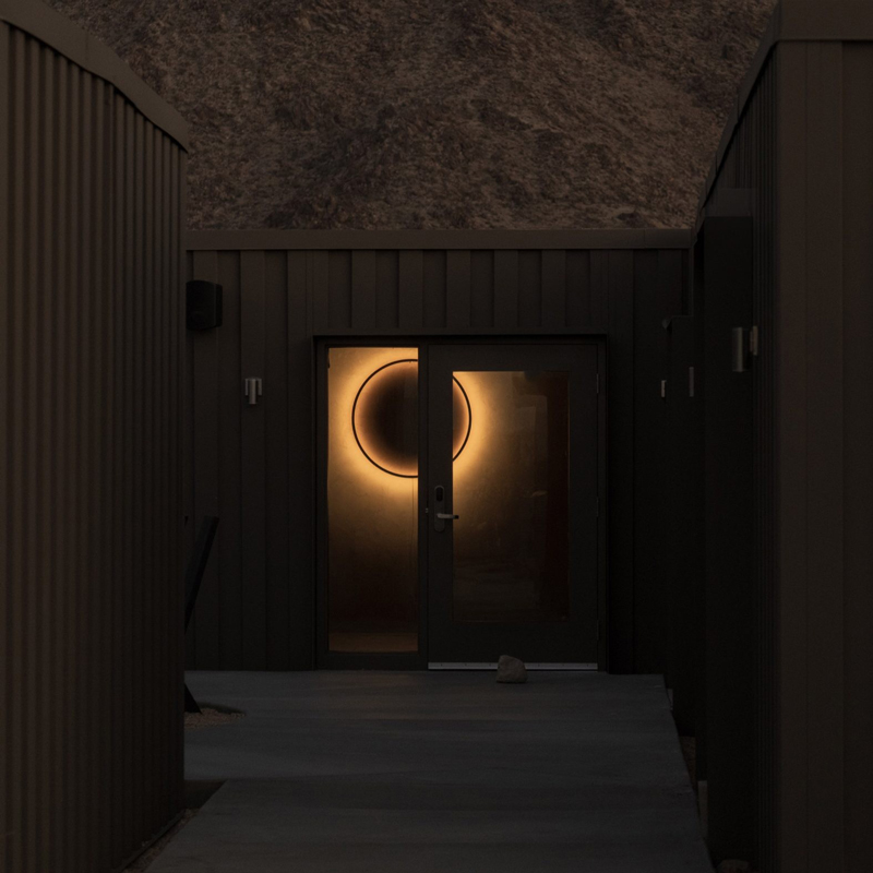 The architecture of RESET Hotel Joshua Tree embraces radical minimalism, allowing the desert to remain the true protagonist. Low-slung structures dissolve into the landscape, using raw materials, natural tones, and clean lines that echo the surrounding terrain. Expansive glass openings blur the boundary between inside and out, framing uninterrupted views of the desert and sky. Interiors follow a restrained palette — sand, clay, stone — punctuated by tactile materials and subtle contrasts, creating spaces that feel both grounding and expansive.