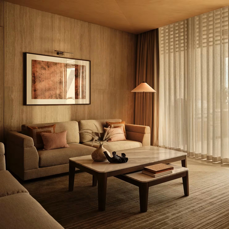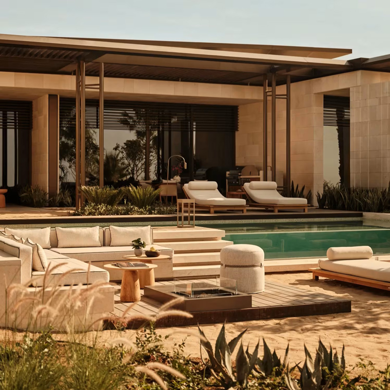 Designed by ACPV Architects Antonio Citterio Patricia Viel, the resort is envisioned as a seamless extension of its environment. Architecture follows the natural contours of the land, with soft, organic forms and locally inspired materials that blend into the coastal terrain. Pathways wind through the property like a hidden village, opening onto panoramic viewpoints where sea and desert meet. The design prioritizes indoor-outdoor living, allowing light, air and horizon to flow freely through every space, creating a sense of quiet immersion.