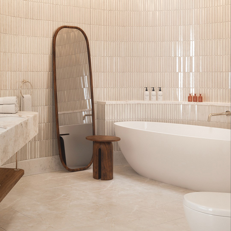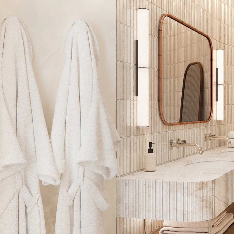 – Contemporary minimalist design with warm textures and natural light