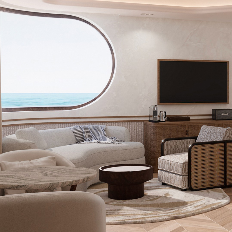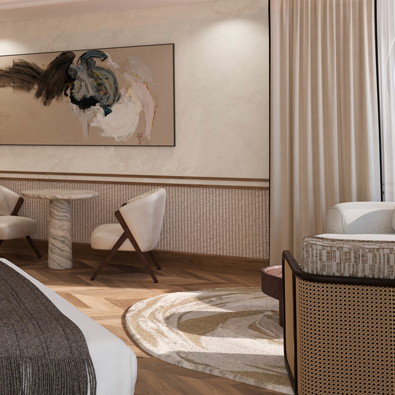 The Cole’s design language is rooted in modern minimalism, elevated by warm textures and a strong connection to its natural surroundings. Light floods through expansive windows, illuminating interiors composed of soft neutral tones, tactile materials, and subtle contrasts. The spaces feel both structured and fluid, echoing the rhythm of the ocean just beyond. From the rooftop to the lobby, every element has been considered to create a calm yet visually striking environment, where elegance is expressed through restraint rather than excess.