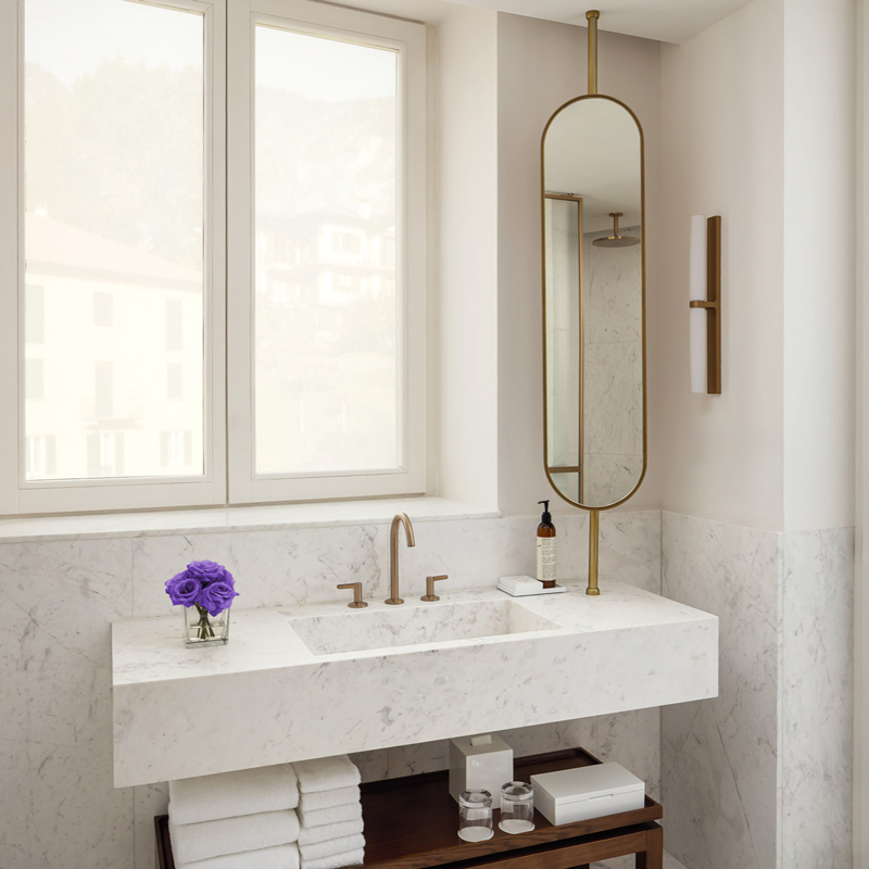 Across 148 guest rooms — including 25 suites and two penthouses — the spirit of Lake Como permeates every corner. Each room is a quiet sanctuary of comfort, where gentle lakeside light, bespoke furnishings, and bespoke fabrics compose an atmosphere both restful and refined. Many accommodations feature French balconies or private terraces framed by sweeping lake views, while interiors gently marry contemporary minimalism with the warmth of Italian craftsmanship. In suite bathrooms, pristine marble and sculptural bathtubs reflect the property’s devotion to elegance and sensory pleasure.