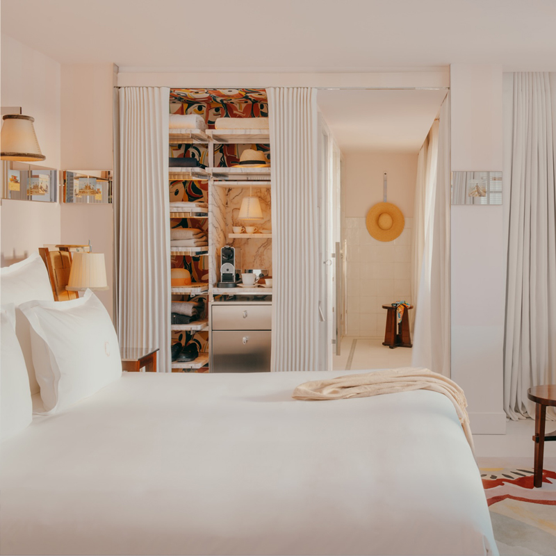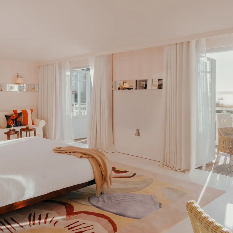 With 28 rooms and suites, Villa Colette promises intimate luxury where every stay feels personalized. Each accommodation features private gardens, terraces, or balconies opening onto the bay, pine forests, or village square. Interiors combine light, airy tones with refined wood furnishings, plush fabrics, and elegantly designed bathrooms, creating spaces that feel both dreamlike and comfortably lived-in. Every room is a retreat where the boundary between indoor elegance and outdoor beauty dissolves, inviting guests to immerse themselves fully in the Cap Ferret experience.